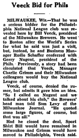 Bill Veeck had allegedly tried to buy the Phillies in 1942