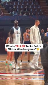 Tacko Fall is confirmed to be 7’5 and 1⁄4” tall barefoot, and Wemby is confirmed to be 7’4” barefoot. That matches what I saw on video at tipoff of the celeb game.